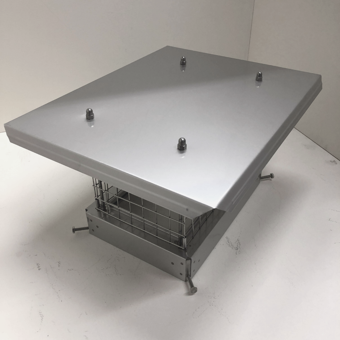 A knock-down chimney cap easily assembled on-site. Fastens to the corners of your clay tile, where it is strongest, and can easily be removed if service is necessary. Comes in a compact box to reduce space in your van or shop. If you need a top plate and collar, see our Flex Flue Protector design.