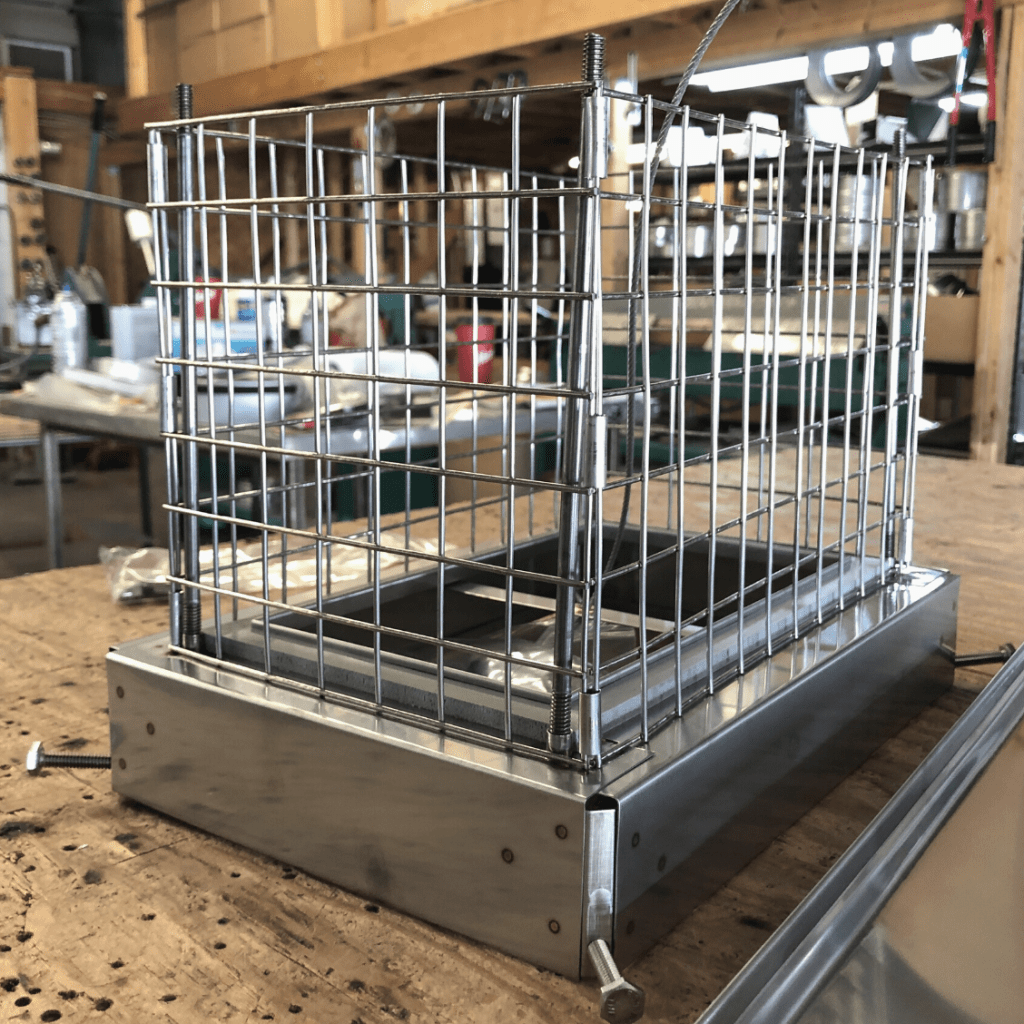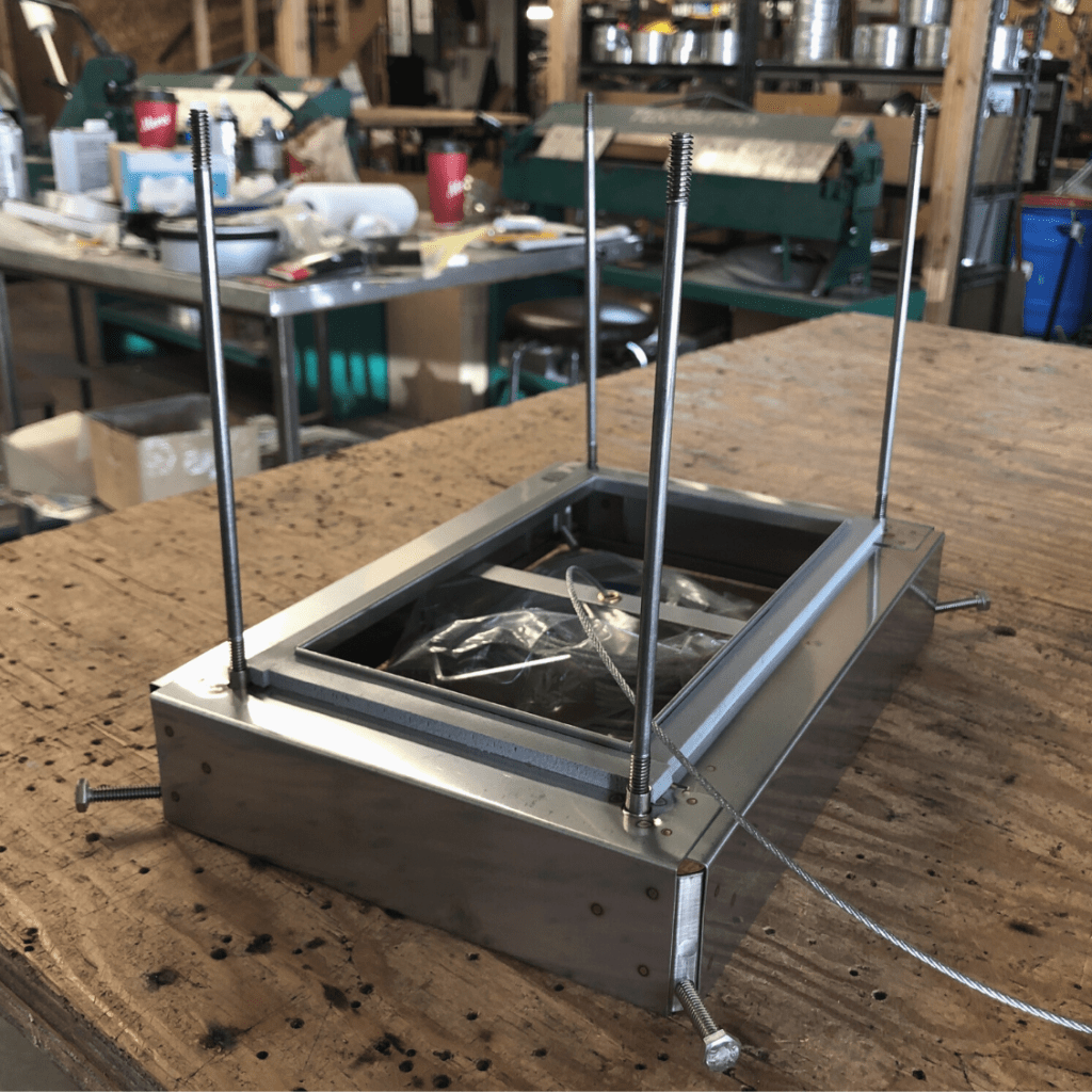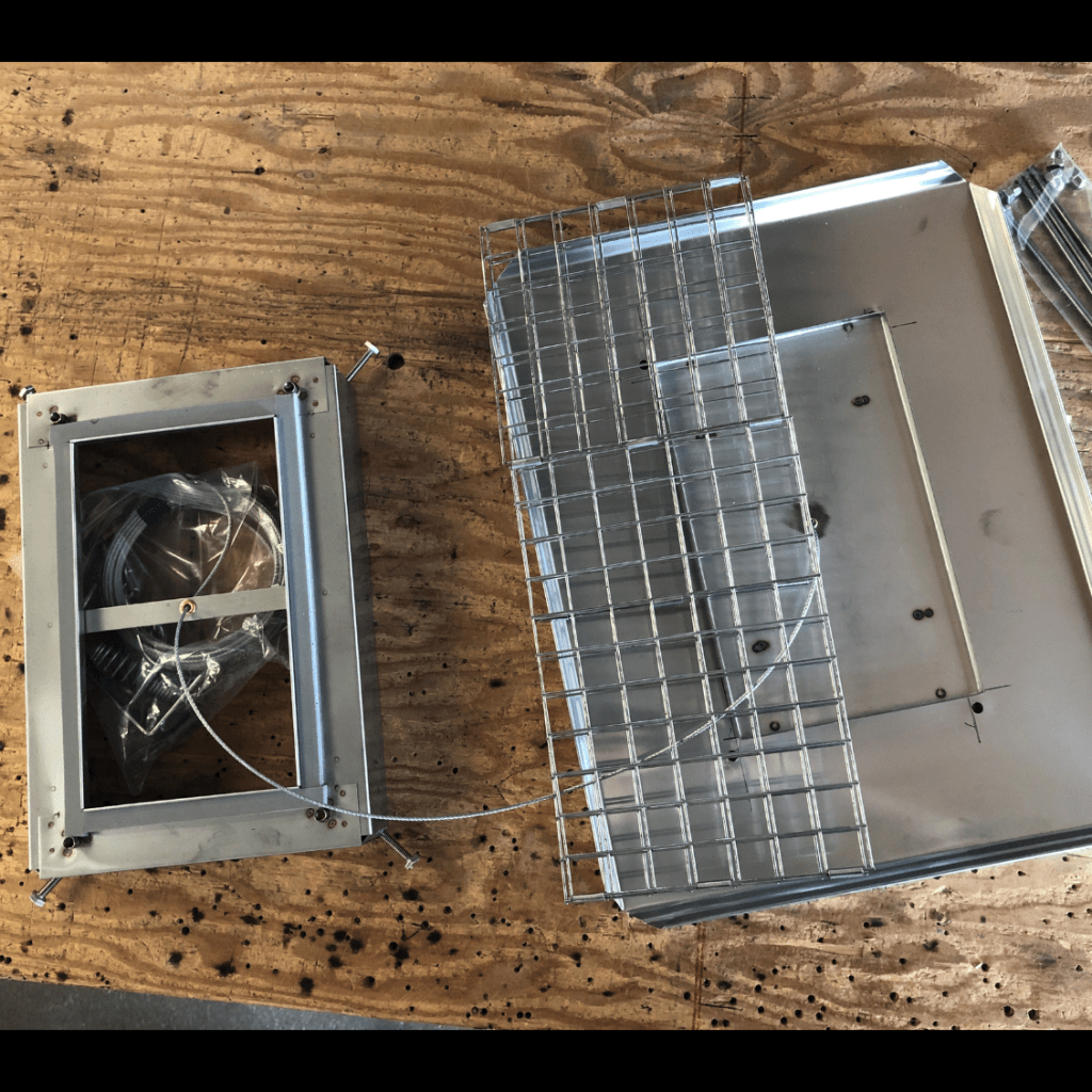 Open the screen and drop it onto the base, making sure all of the threaded rods are to the inside and the screen itself is resting along the base.